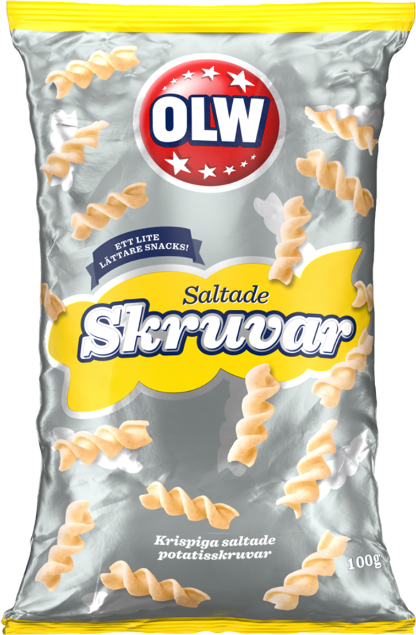 Riktigt goda och krispiga skruvar från OLW. Våra skruvar är saltade för att du ska kunna njuta av den naturliga potatissmaken. Potatisskruvar är ett lite lättare snacks med 30% mindre fett än standardchips. Resultatet ger en krispig och en tydlig jösses-vad-det-här-är-gott-jag-kan-inte-sluta-smak!
