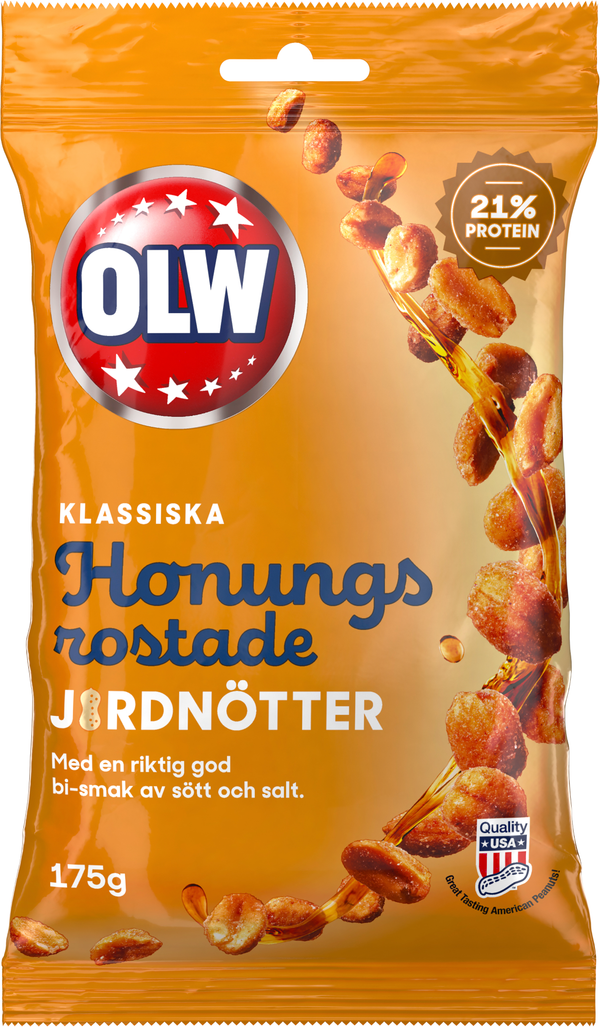 OLWs chilinötter har ett extra krispigt skal och rejält sting. Först rostas jordnötterna, därefter bakas de i en kryddblandning av cayenne, chili, oregano och paprika. Resultatet blir ett snacks där hettan från chilin möter sötman från jordnöten. Supergott!